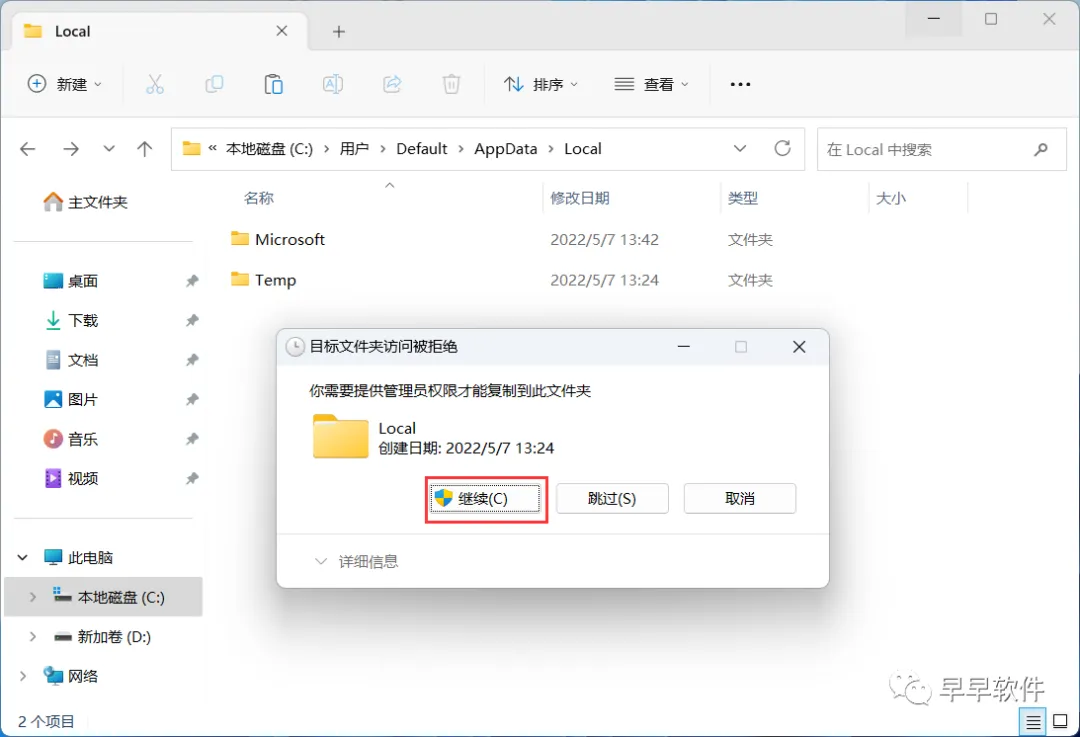 31、打开路径:C:\Users\Default\AppData\Local,再右键文件夹的空白处,点击【粘贴按钮】