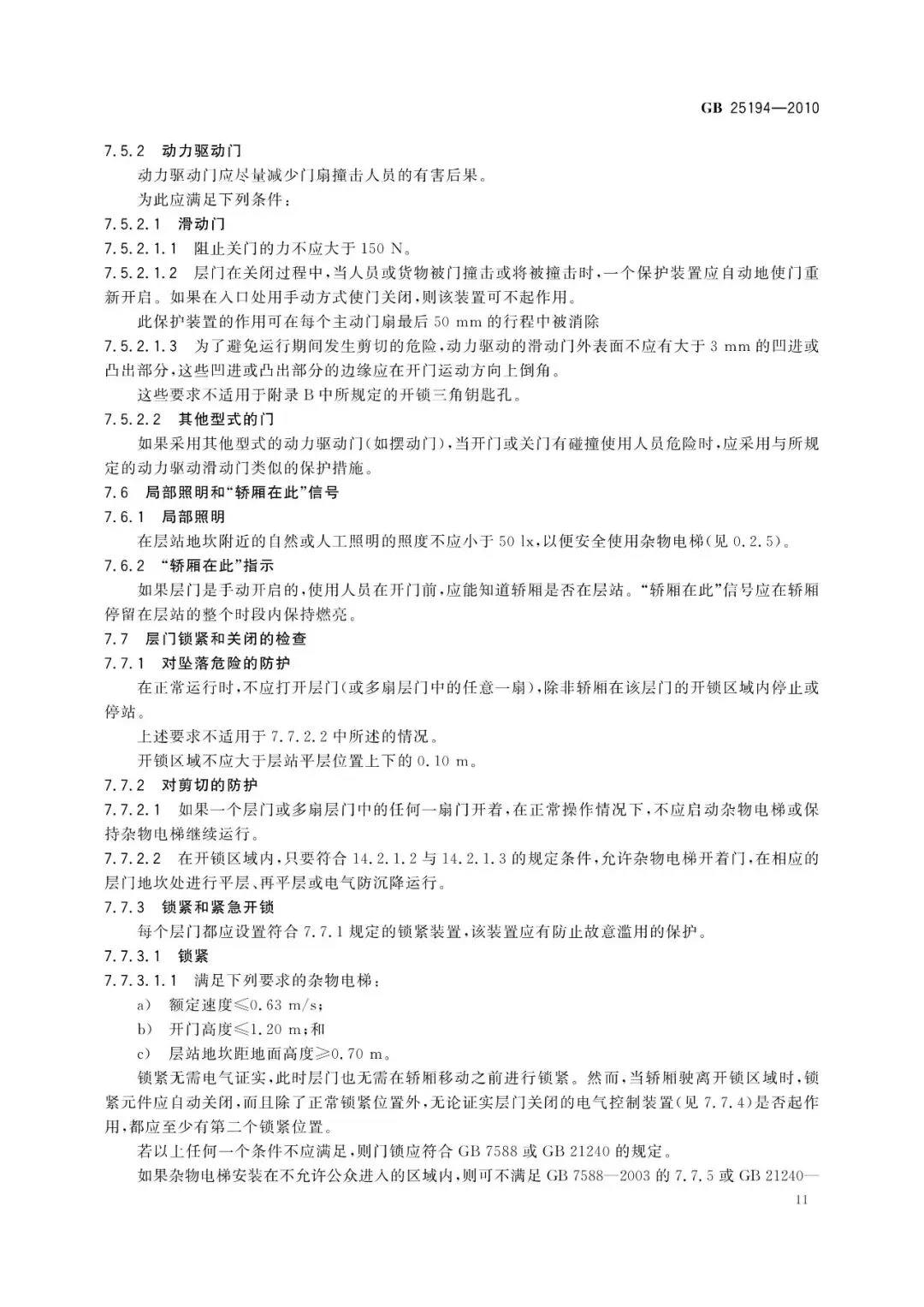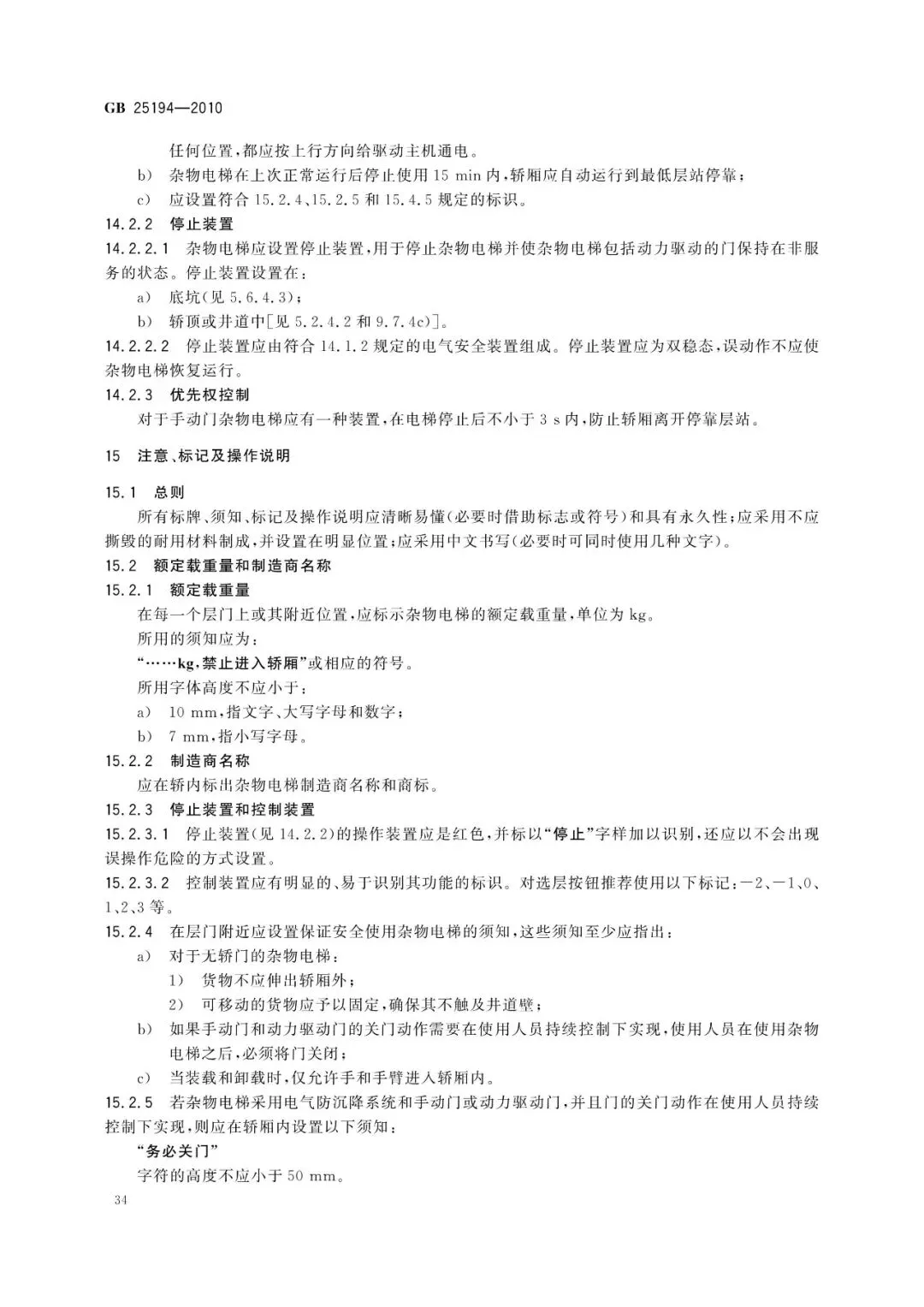 英文标准名称:Safety rules for the construction and installation of service lifts