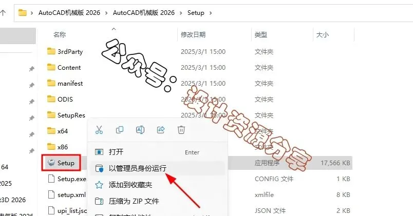 2、打开文件夹,右键"Setup"安装程序,选择“以管理员身份运行”4、可以更改安装路径,安装路径不要有中文。小编这里是默认安装,点“安装”9、在空白处,点击“粘贴”,选择“替换目标中的文件”12、以上就是AutoCAD机械版2026软件安装的全过程,要是对你有帮助的话,请为小编点个赞!