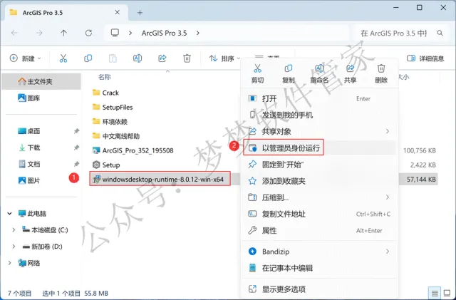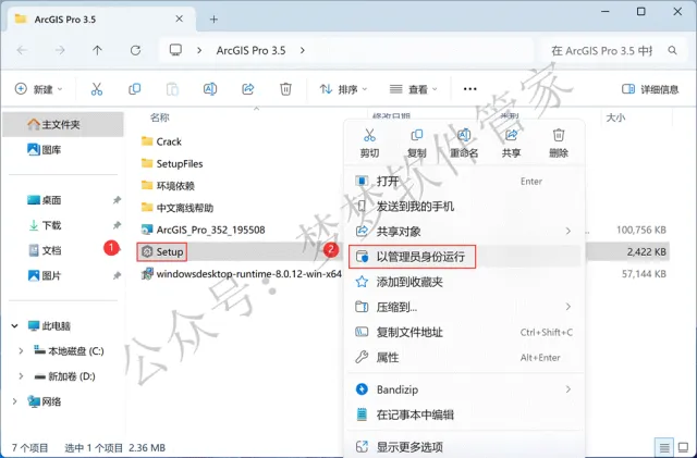 7、回到ArcGIS Pro 3.5文件夹,找到【Setup】应用程序,右键选择【以管理员身份运行】它