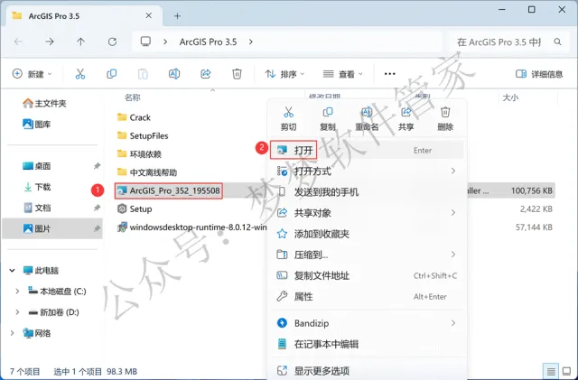 1、下载ArcGIS Pro 3.5软件安装包到电脑上,右键选择【解压到ArcGIS Pro 3.5\】