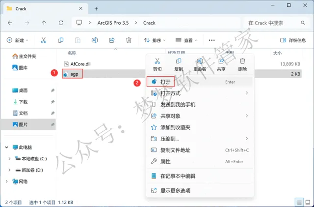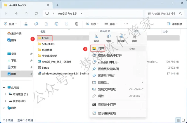 22、回到ArcGIS Pro 3.5文件夹,找到【Crack】文件夹,右键【打开】它