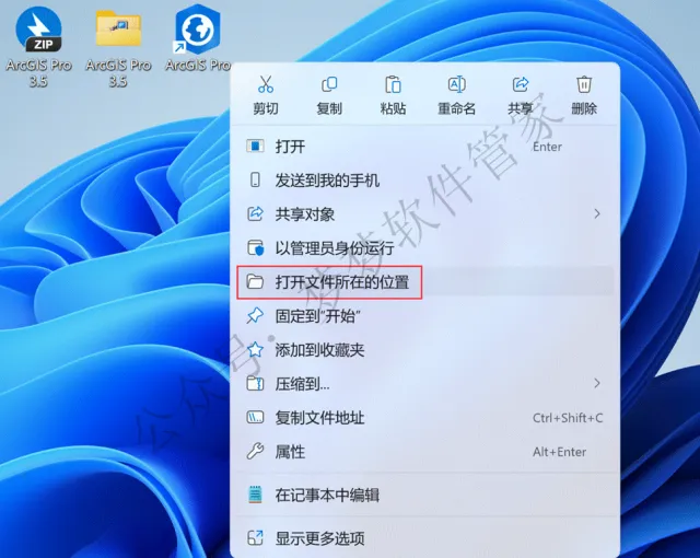 28、右键桌面上的【ArcGIS Pro软件图标】,点击【打开文件所在的位置】