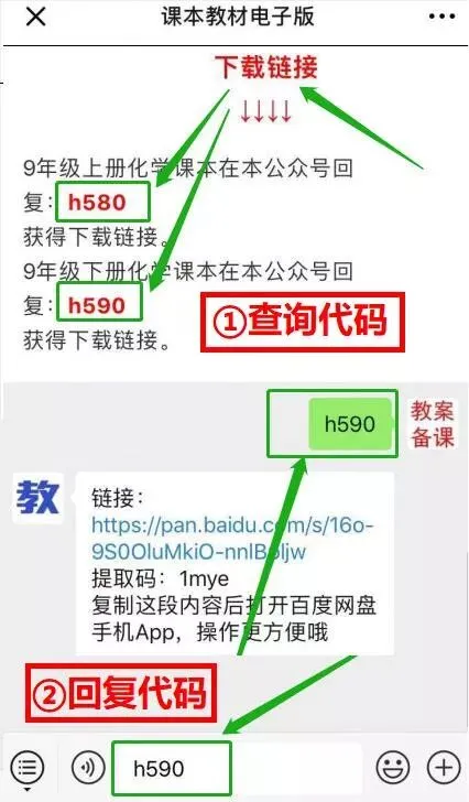 ①在本公众号的文章里查找所需要的课本代码;②在对话框里回复课本代码。