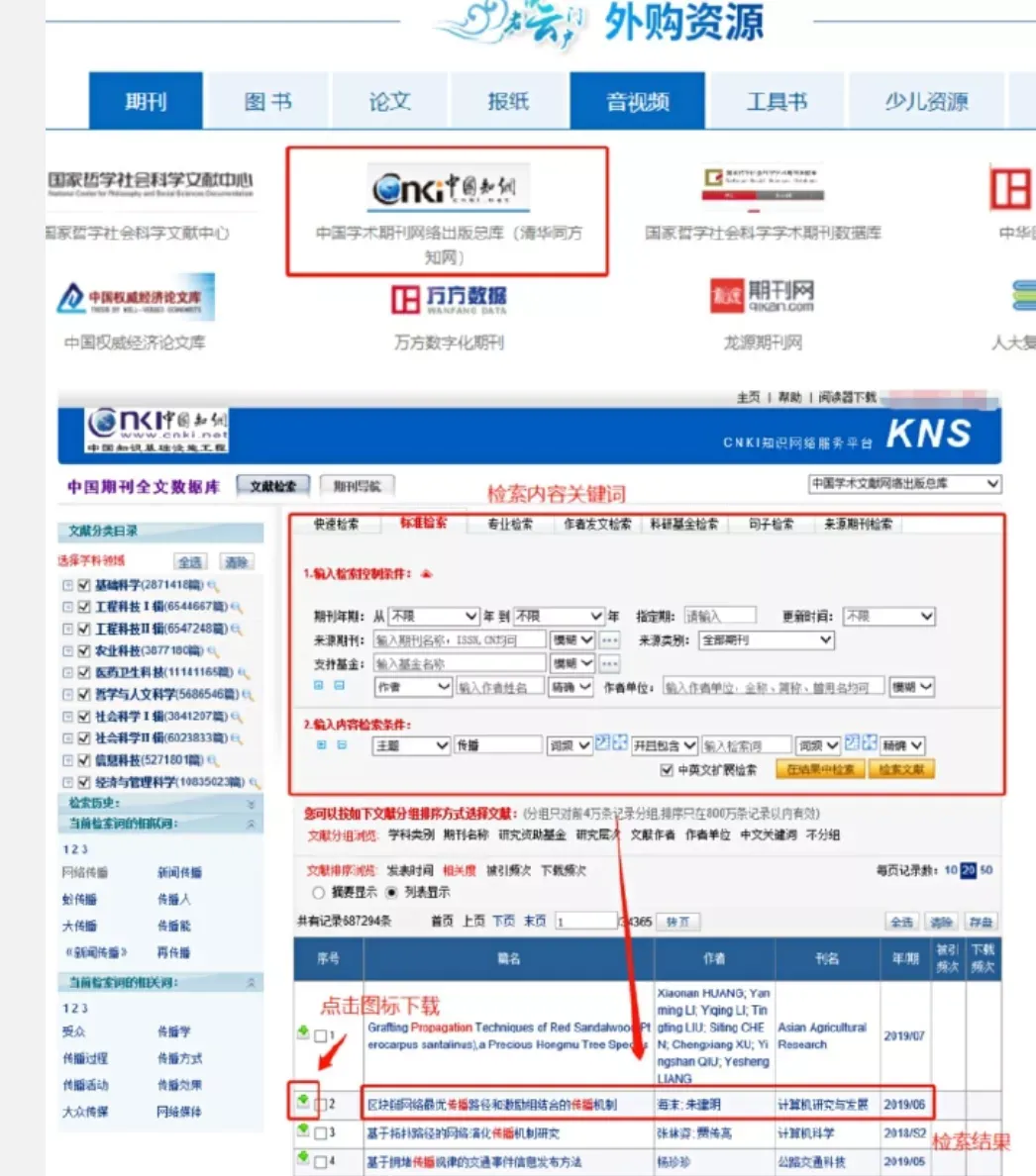 注册、登陆账号,首页下拉到最后的“外购资源”,点击下方知网跳转,输入关键词后点击“检索文献”即可。