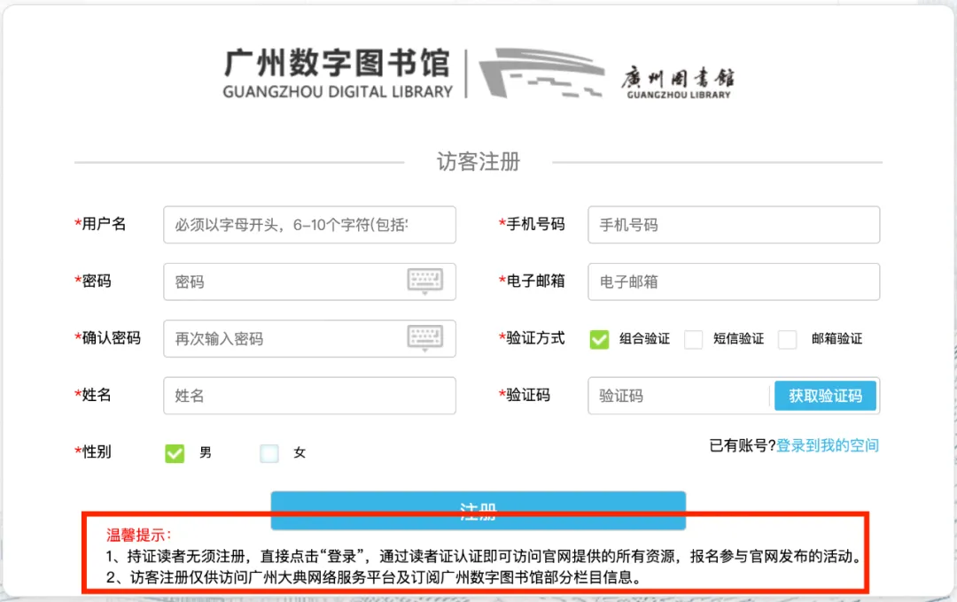 注:这个图书馆的读者证目前仅限广州或者佛山身份证办理,可以试试访客注册。