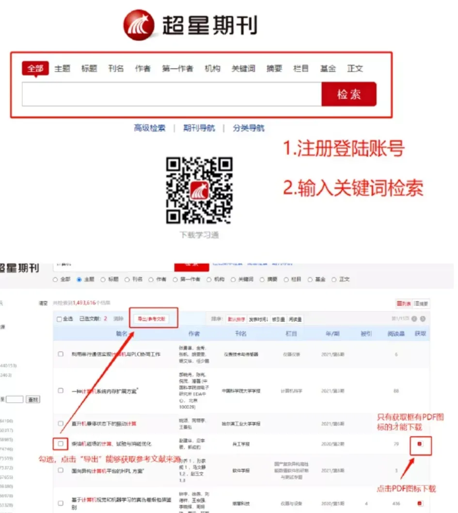 直接用超星学习通的账号登陆,里面有很多期刊论文资料,但是只有部分资料能下载。