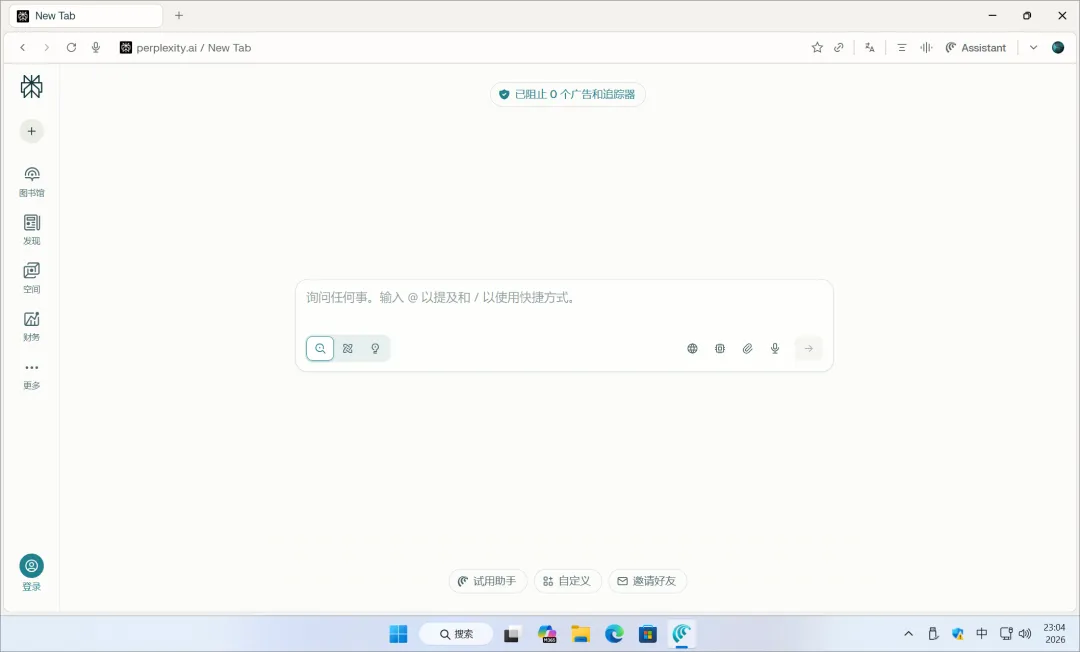 免费版主要集中在侧边 AI 助手功能,比如网页摘要、内容解读、笔记整理等,但部分功能仍受限,并且新建标签页会默认跳转到 Perplexity 首页。