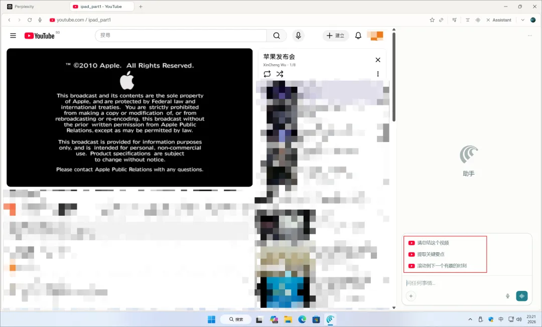 Comet 支持对 YouTube 视频进行智能分析,包括自动生成摘要、提取重点信息、定位具体时间片段,适合快速浏览长视频内容。