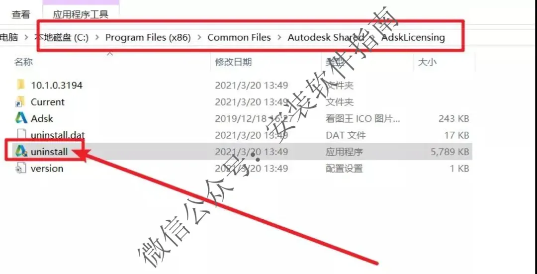 10.打开文件夹路径【C:\Program Files (x86)\Common Files\Autodesk Shared\AdskLicensing】,双击uninstall