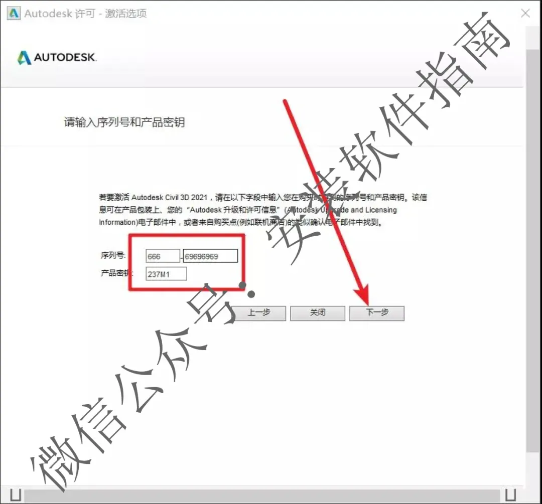 22.输入666-69696969(密钥默认是自动填入的,如果没有就填237M1)点下一步