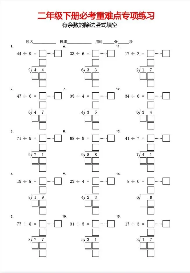 ✅「二年级(下)数学有余数的除法竖式填空.pdf.pdf」