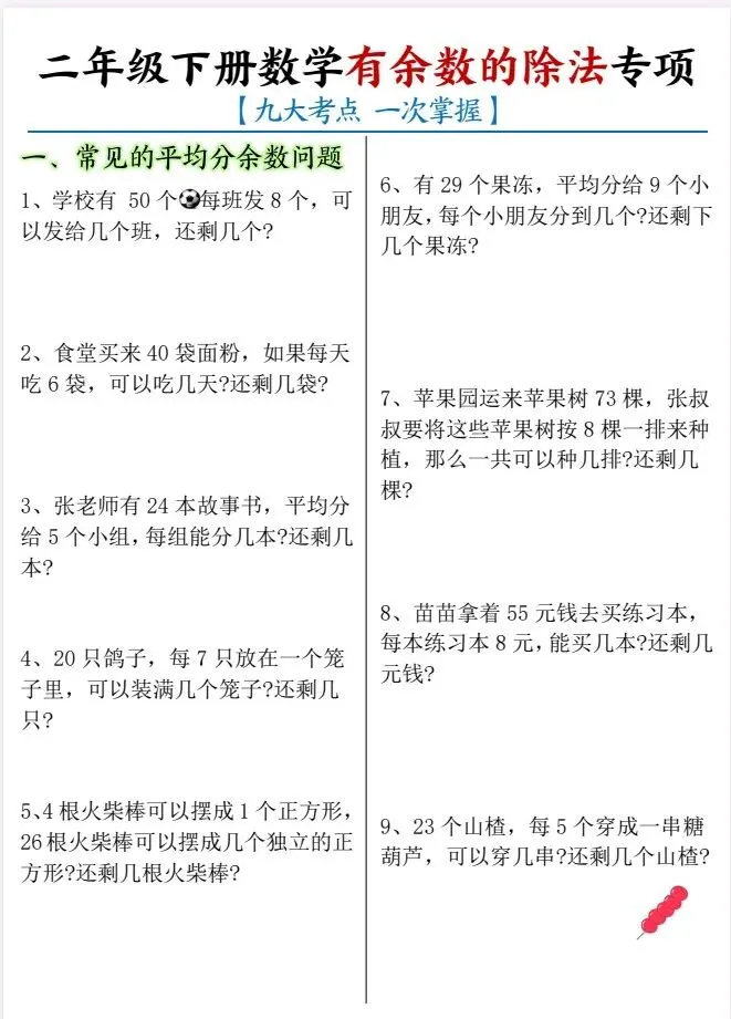 ✅「 二年级下册数学有余数的除法九大专项.pdf」链接:https://pan.quark.cn/s/2d3b8396873b