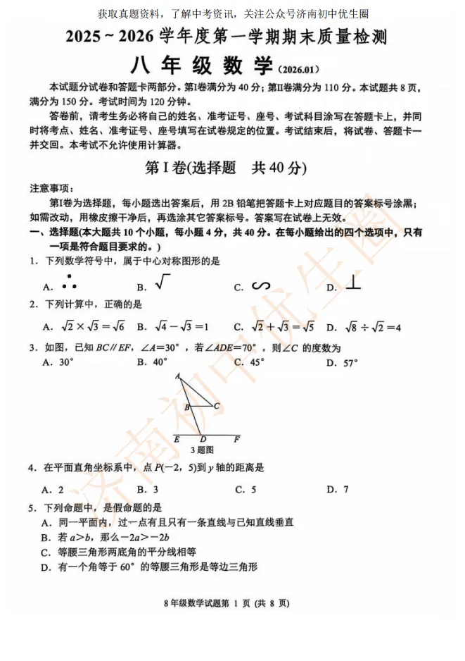 济南市各区期末考试正在进行中,关注公众号:济南初中优生圈,扫码免费领取初一至初三期末最新真题