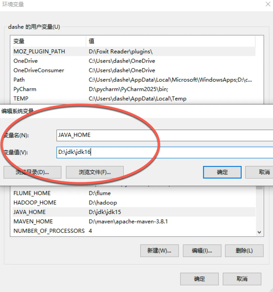 值:D:\jdk\jdk16