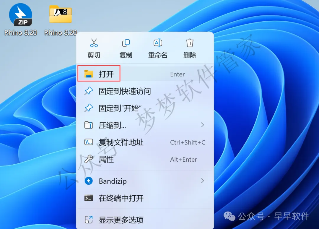 14、回到桌面,右键桌面上的【Rhino 8软件图标】,点击【打开】