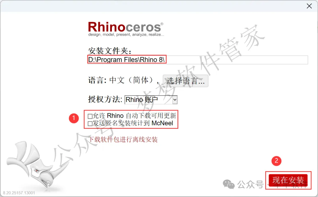 1、下载Rhino 8.20软件安装包到电脑上,右键选择【解压到Rhino 8.20\】