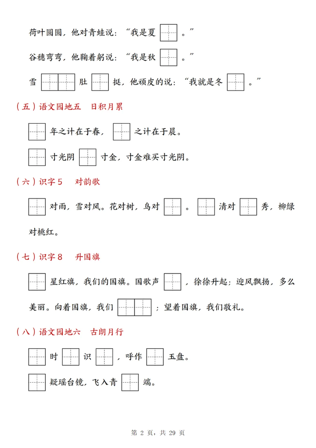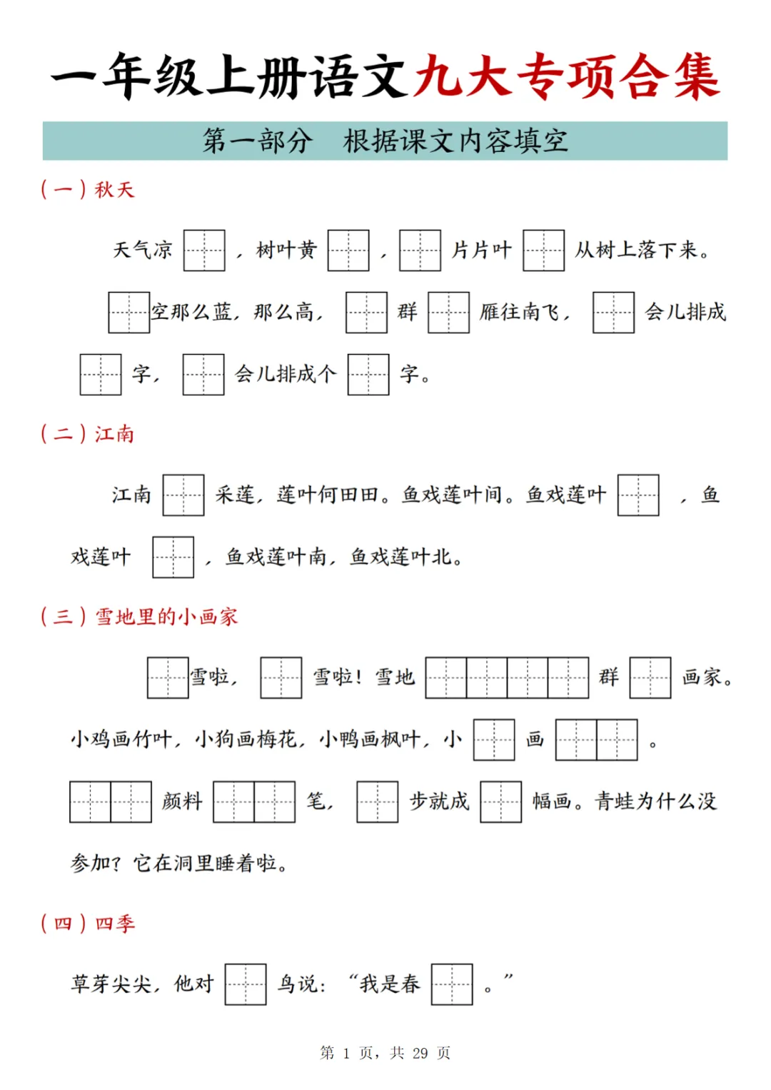 25年一上语文九大专项合集(29页)