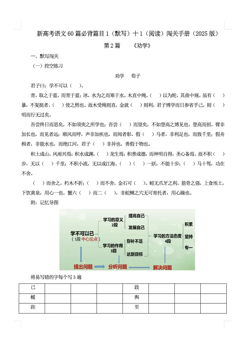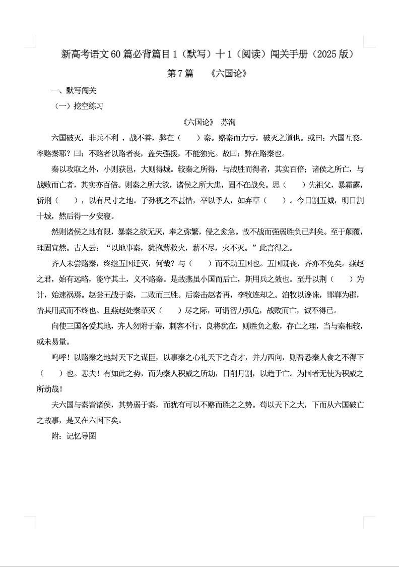 >高考60篇古诗文默写+阅读闯关手册|免费下载