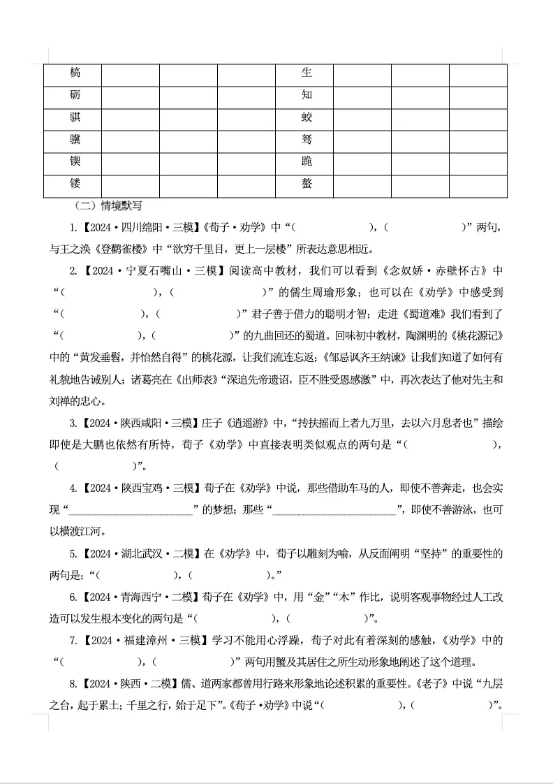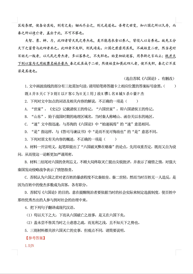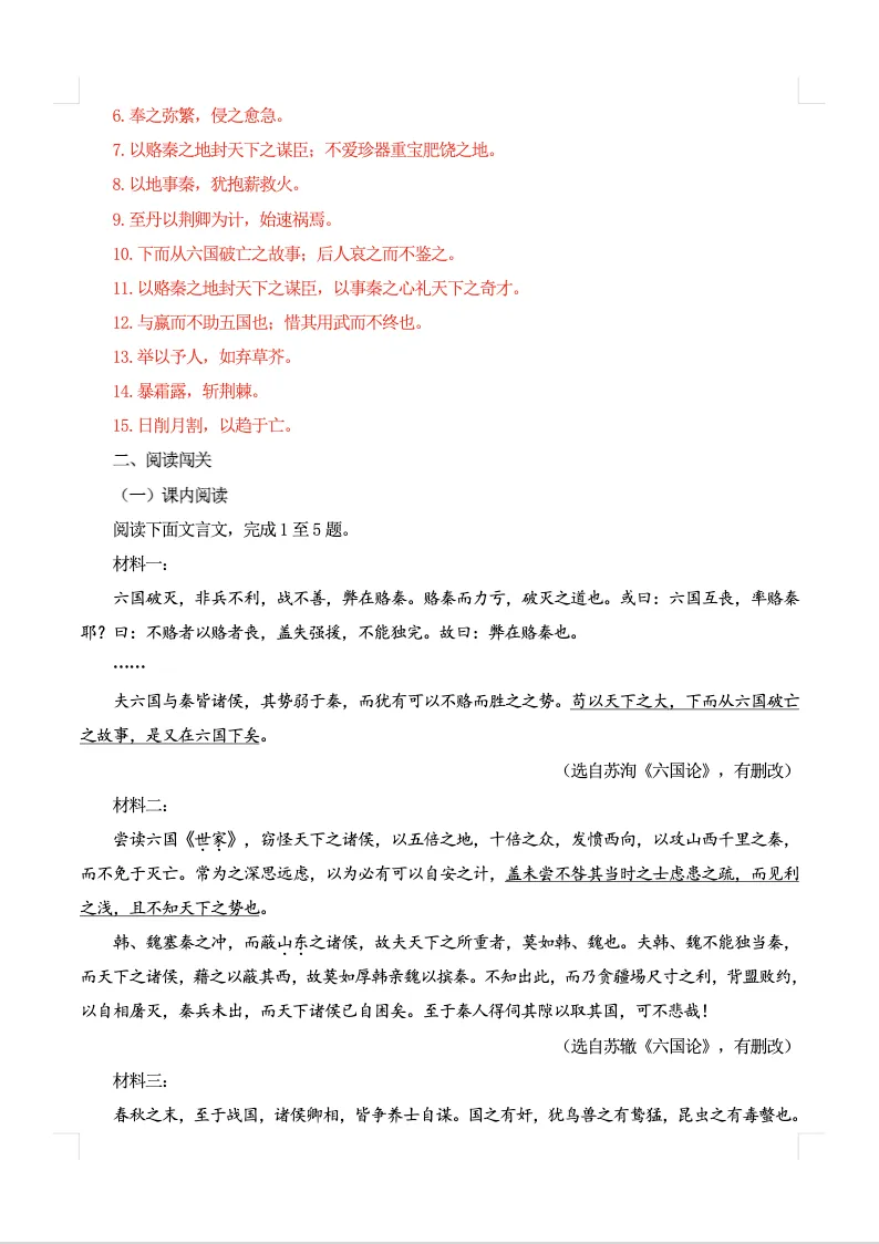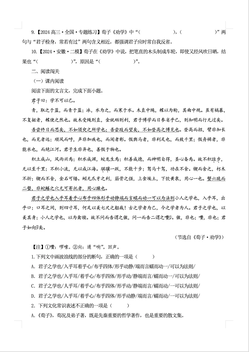 下文有劝学原卷板和六国论解析版的1-4页截图。