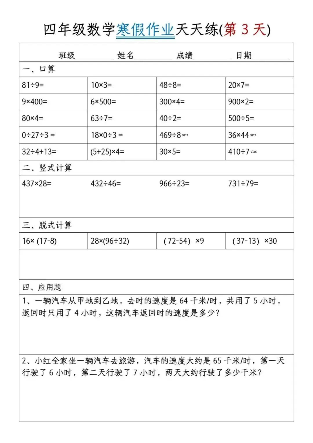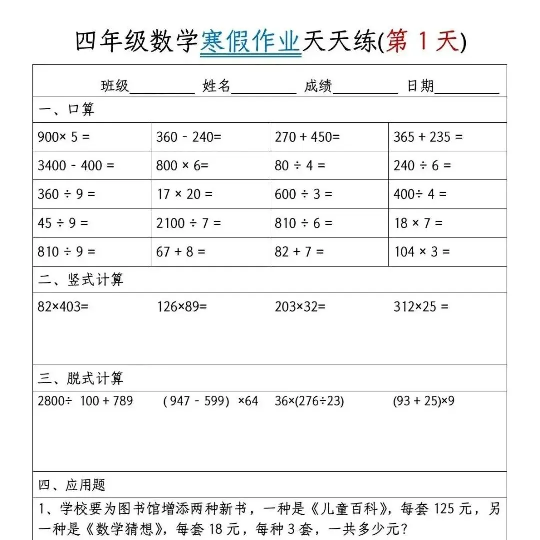 - 免费获取:作为公益分享,本套小学四年级数学寒假作业资源完全免费,助力孩子轻松学习。