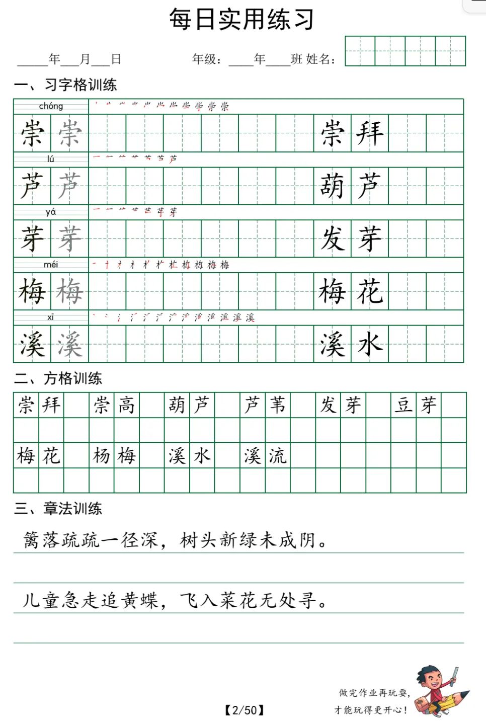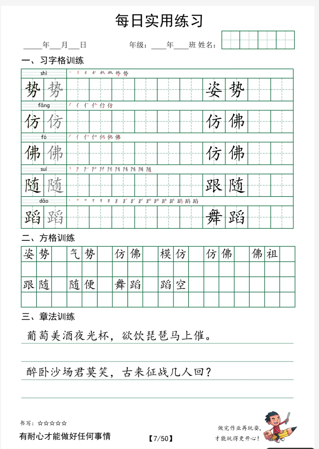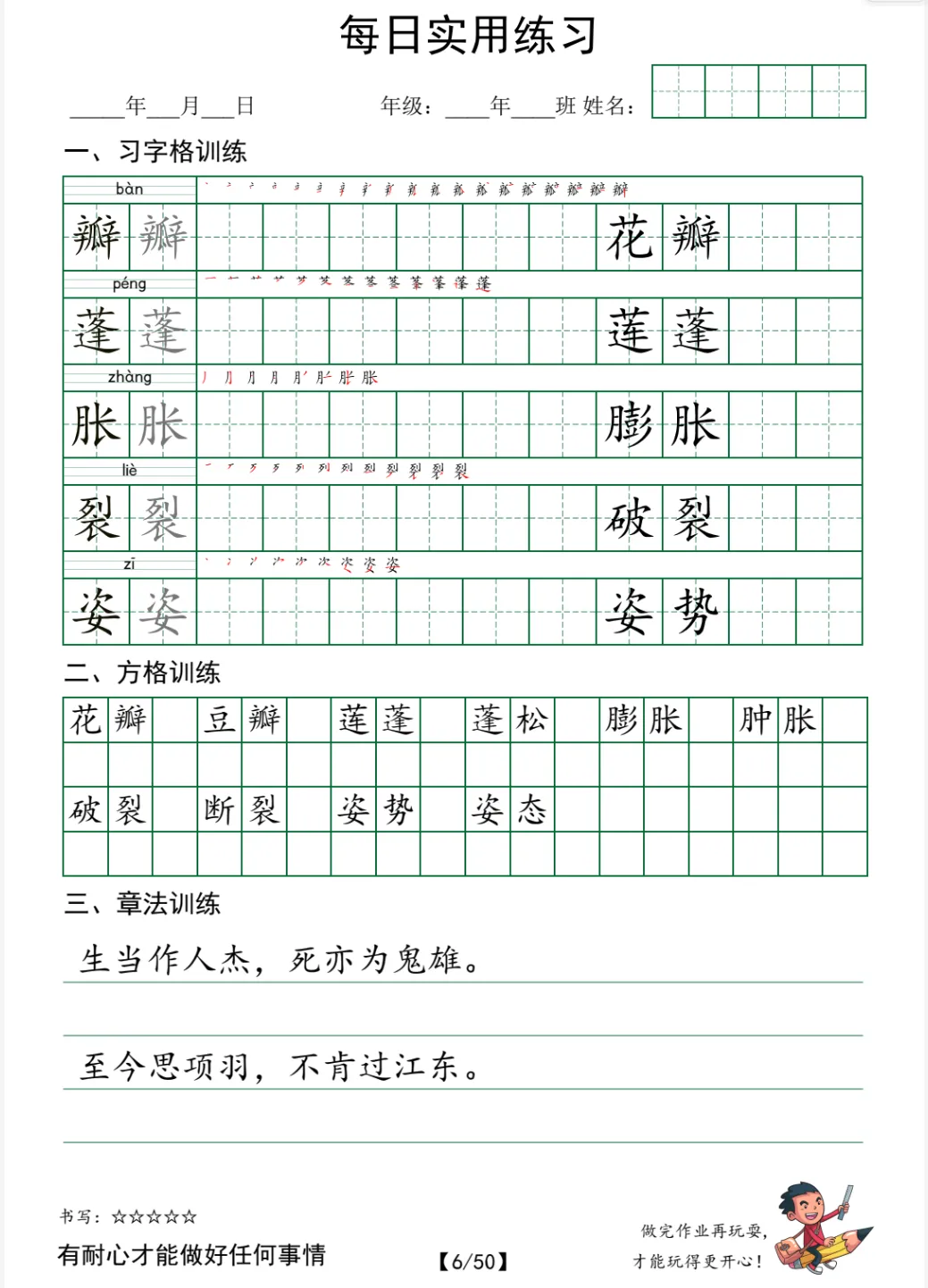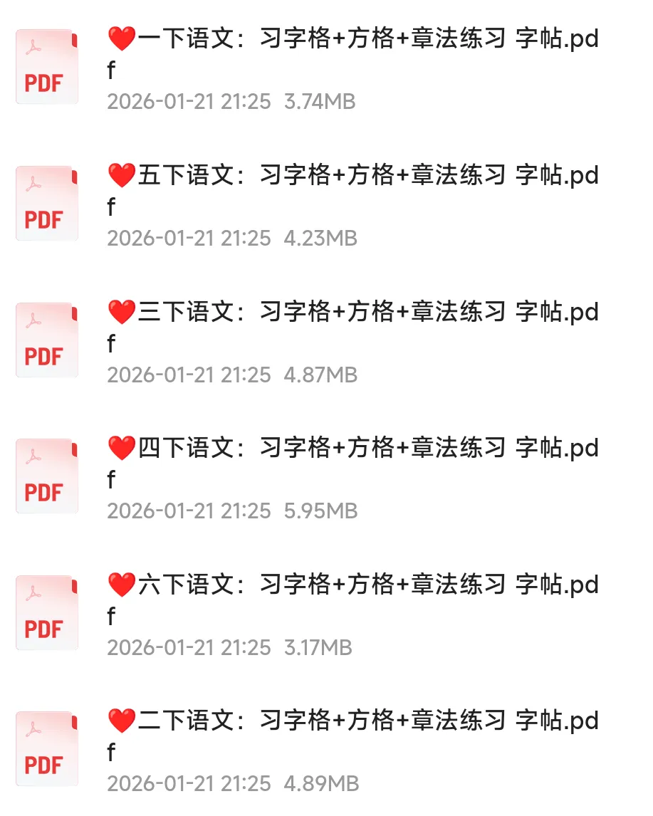 大家好,今天为大家分享一份非常实用的学习资料:26年小学1-6年级下册每日练字字帖。