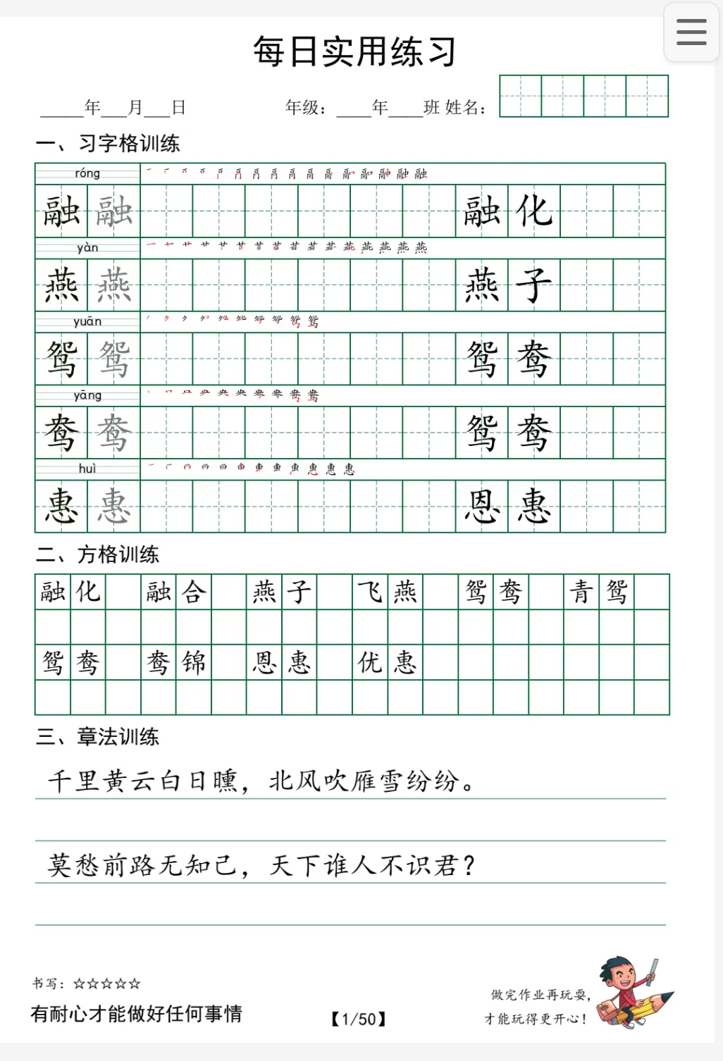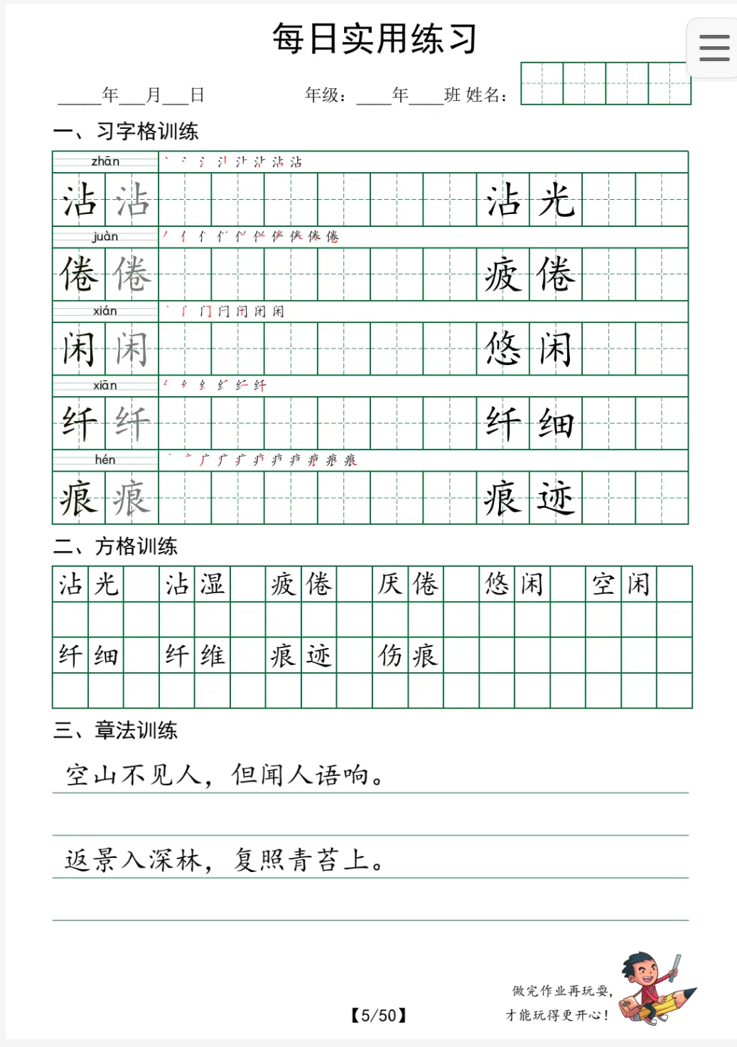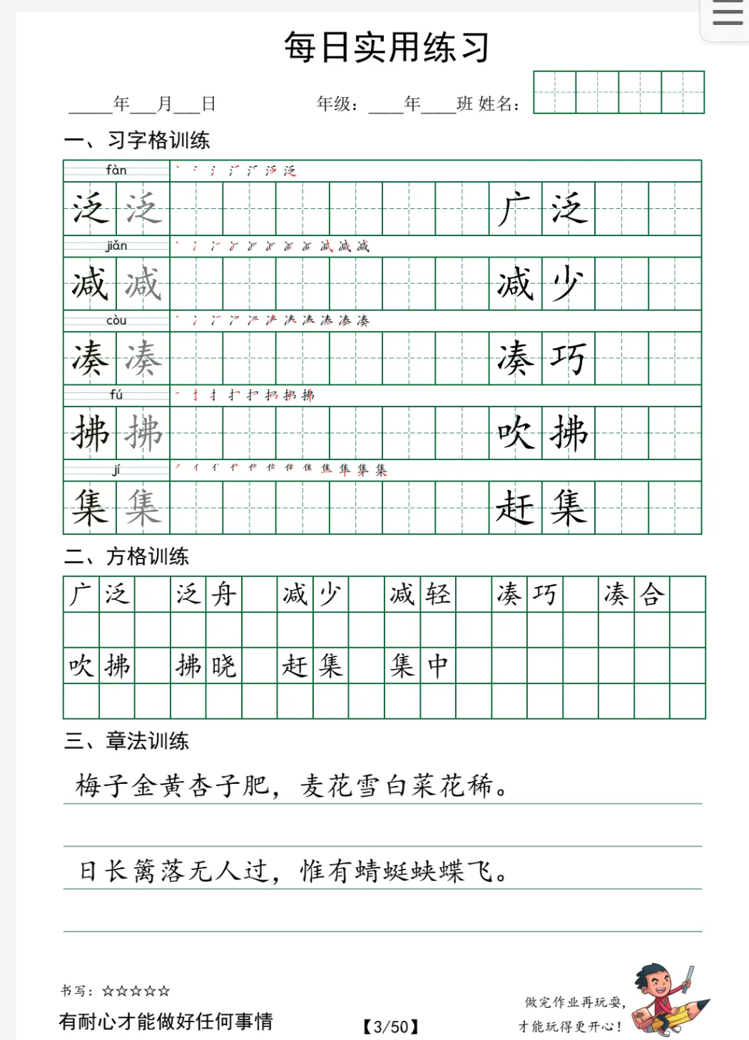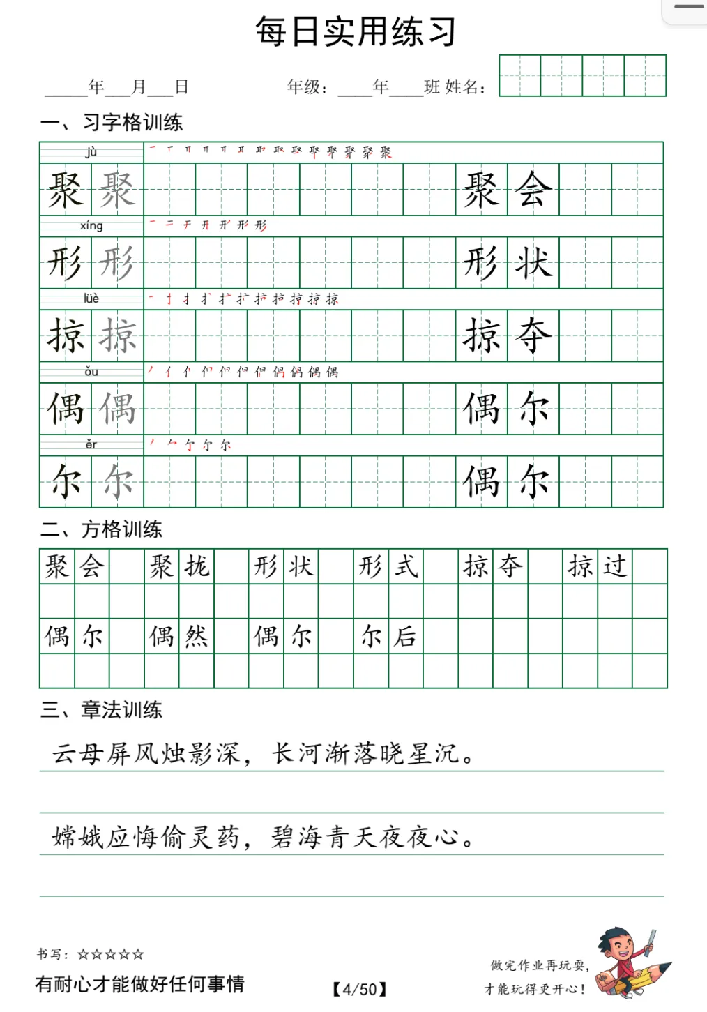 大家好,今天为大家分享一份非常实用的学习资料:26年小学1-6年级下册每日练字字帖。