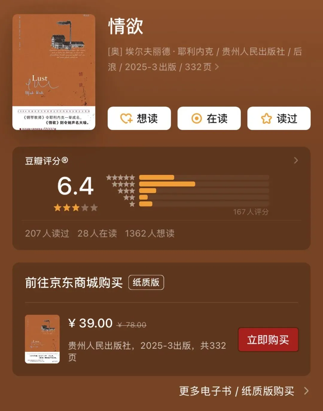 《情欲》远不止是一部描写两性关系的小说,它是一面冷酷的镜子,映照出在疾病、社会压力与伦理规范的多重围困下,人性的脆弱与复杂。格蒂的悲剧,既是个体在欲望与责任间的迷失,也揭示了当社会环境压抑本能时,爱如何异化为伤害,而追寻自由的旅程又如何通往更深的牢笼。这部作品以其冷峻的笔触,深入探讨了爱、欲、责任与欺骗之间模糊而疼痛的边界。