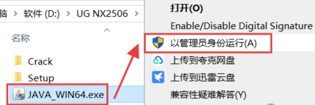 3.选中【JAVA_WIN64】程序,鼠标右键选择【以管理员身份运行】。