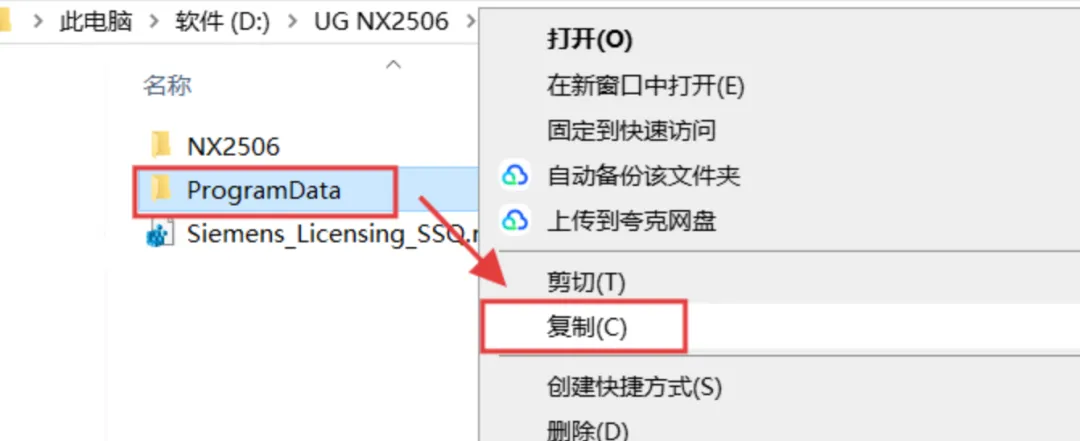 29.选中【NX2506】文件夹,鼠标右键进行【复制】操作。