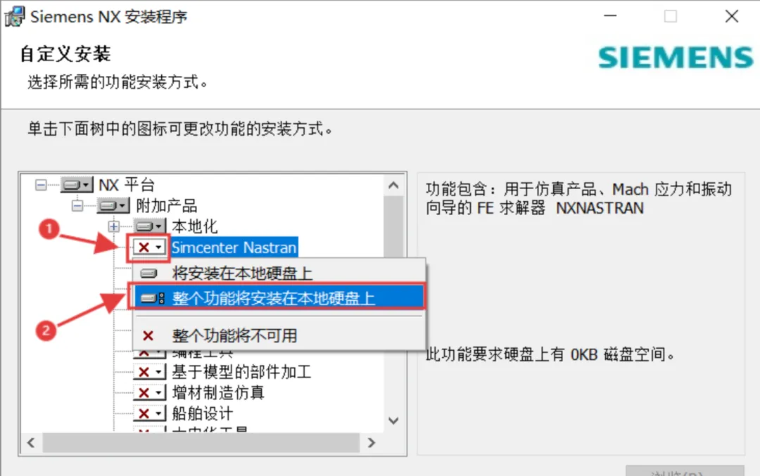 18.依次把本地化下方,前面带有红色【X】的项目点击展开,选择【整个功能将安装在本地硬盘上】。(下拉所有前面带红X的都要这样操作一次)