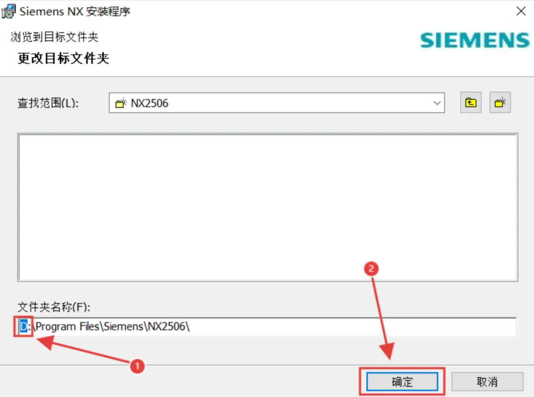 20.修改安装路径:可以把地址栏前面的C改成D,则表示程序将安装到D盘,然后点击【确定】。(注意!安装路径和文件夹不要有中文,否则安装使用过程会有问题)