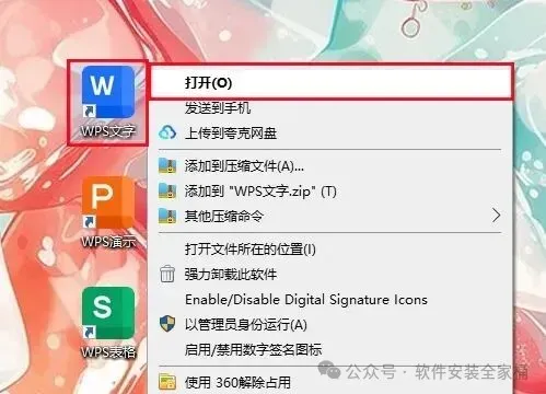 1、下载WPS 2025软件安装包到电脑上,右键选择【解压到当前文件夹】。