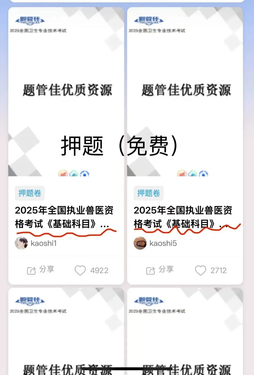 ③真题资源是很多兽医考生的备考重点,而这个小程序完整收录了历年真题,备考资料齐全,省去四处找题的时间。考前还会提供押题卷,帮助考生进行最后冲刺。