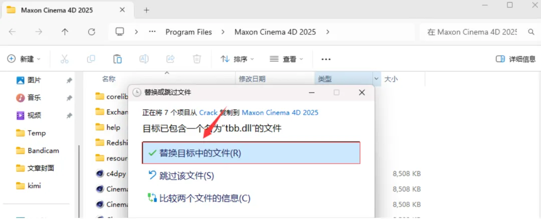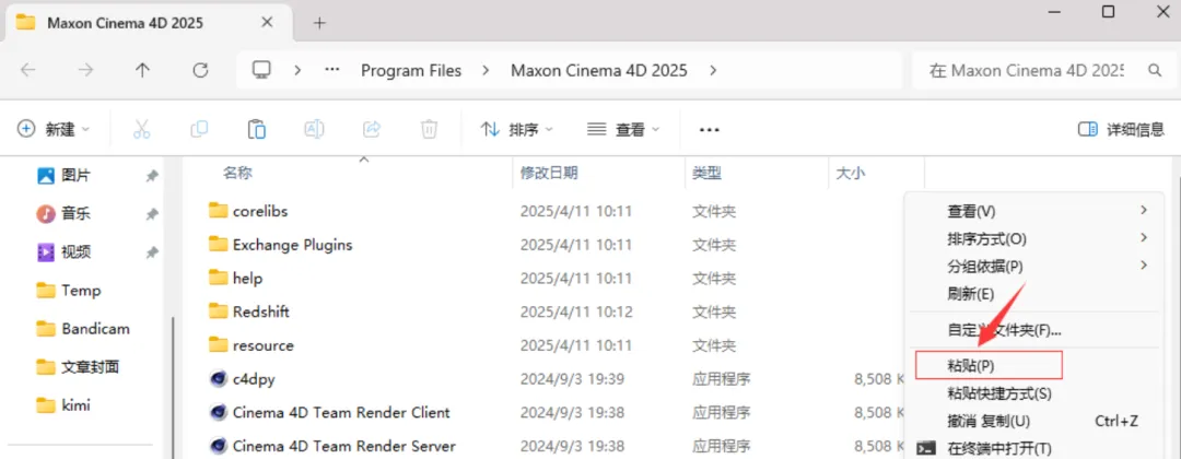 第一步找到下载好的Cinema 4D(C4D)安装包,解压安装包。 第二步进入文件夹,找到"setup"文件,然后双击打开。 第三步点击前进。 第四步选择好Cinema 4D(C4D)安装目录后,点击前进。 第五步点击前进。 第六步正在安装Cinema 4D(C4D)。 第七步点击完成。 第八步打开安装包解压后的文件夹,进入到Crack文件夹中。 第九步鼠标右击resource选择复制。 第十步创建桌面快捷方式:点击桌面任务栏中的【开始图标】>点击【全部】>双击展开【Maxon】文件夹,将【Maxon Cinema 4D 2025】图标拖到电脑桌面。 第十一步鼠标右击 Cinema 4D图标选择【打开文件所在的位置】。 第十二步鼠标右击空白处选择粘贴。 第十三步替换目标中的文件。 第十四步双击桌面Cinema 4D图标启动软件。 第十五步安装成功,打开即可使用。 |
