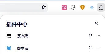 调出并点击插件中心按钮,进入插件管理或者插件中心界面,搜索并安装篡改猴或者脚本猫,这俩属于脚本管理器。