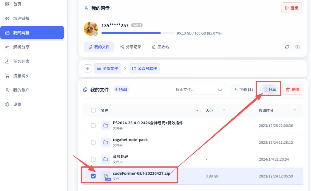 这个操作可以在官方网盘里分享也可以直接在此工具里分享,分享后会自动调用该工具,添加到下载列表并自动开始下载,速度同样控制在11M。