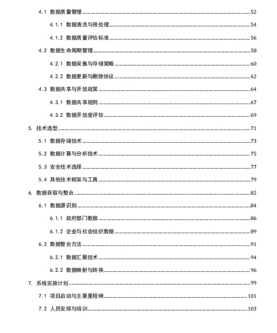 方案采用**分层解耦架构**,自下而上构建数据采集层、分布式存储层、数据治理层与应用服务层,融合区块链存证、隐私计算、多因素身份认证(MFA)与基于属性的访问控制(ABAC)等技术,确保数据全生命周期的可信、可管、可控。核心能力包括:建立统一的数据标准与质量评估体系,实现异构数据的高效汇聚与清洗;构建动态数据治理框架,支持数据分类分级、脱敏处理与合规审计;提供标准化API与微服务接口,支撑政务服务、经济运行监测、公共安全等多元应用场景。