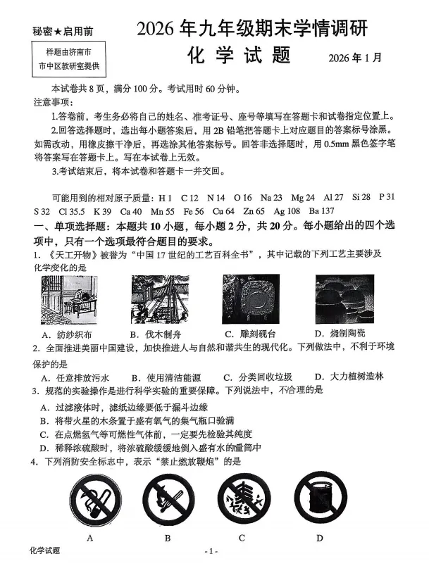 【免费下载】2026年槐荫区初三期末【英语】真题