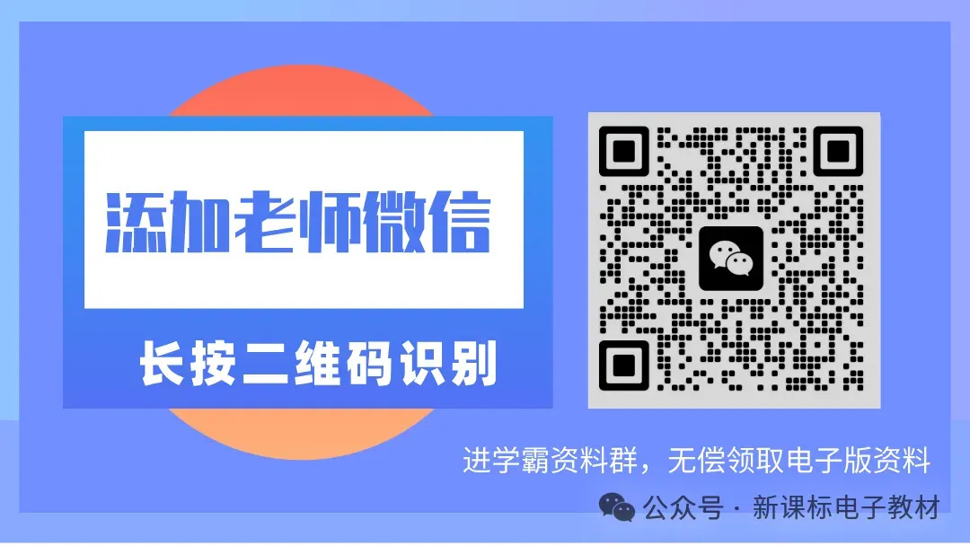 步骤1:在文末给这篇文章点亮“❤”,“👍”图标,并关注本公众号!步骤2:➕微信xxzl1133,或扫下方二维码添加!声明:公众号所有分享资料均来自互联网整理,仅供学习交流使用,切勿用作商业活动。我们尊重原创,电子教材及电子版教辅资料版权归属出版机构或原作者所有。如有涉及侵权,请立即联系我们删除。