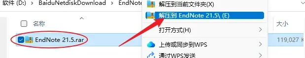 1.鼠标右击下载的【EndNote 21.5】压缩包,选择解压到【EndNote 21.5】。