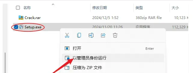 3.鼠标右击【Setup】选择【以管理员身份运行】。