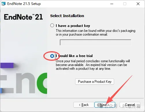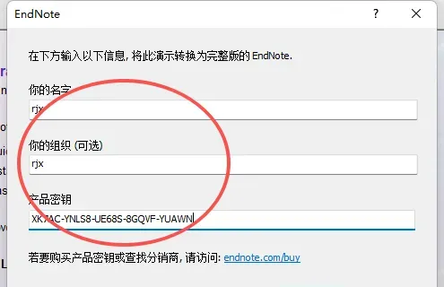 24.输入名字.组织(可任意输入),在“Product key"下框内粘贴步骤18生成的激活码(可使用快捷键”Ctrl+v"),点击【Next】。