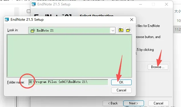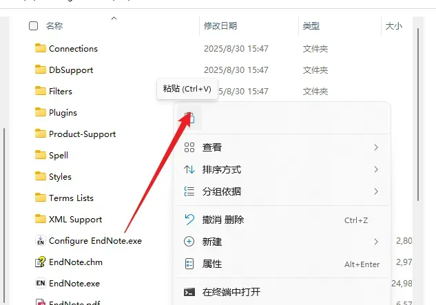 17.打开安装路径根目录【D:\Program Files (x86)\EndNote 21】(若你在步骤8修改为其它盘,打开你设置的磁盘根目录),鼠标右击空白处选择【粘贴】。