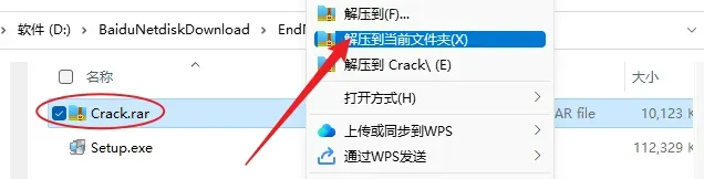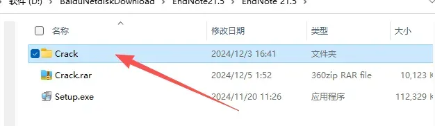 14.打开安装包解压后的【EndNote 21.5(64bit)】文件夹,①鼠标右击【Crack】压缩包②选择电脑上安装的解压软件(如:Winrar)③点击【解压到Crack】。
