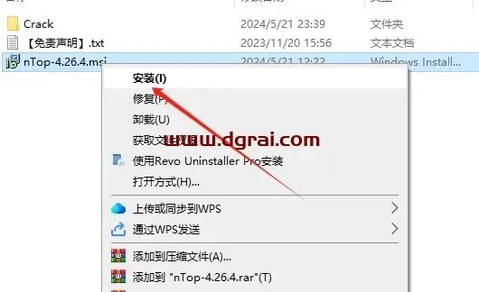 选择【nTop-4.26.4.msi】鼠标右键点击安装