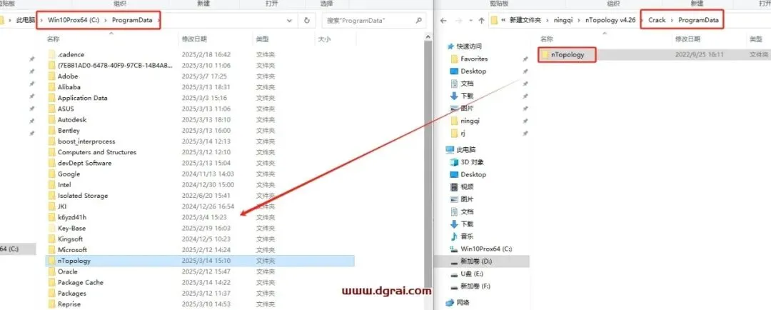 打开Crack\ProgramData文件夹,将里面的nTopology文件夹复制到C:\ProgramData下(注意:ProgramData是隐藏文件夹)