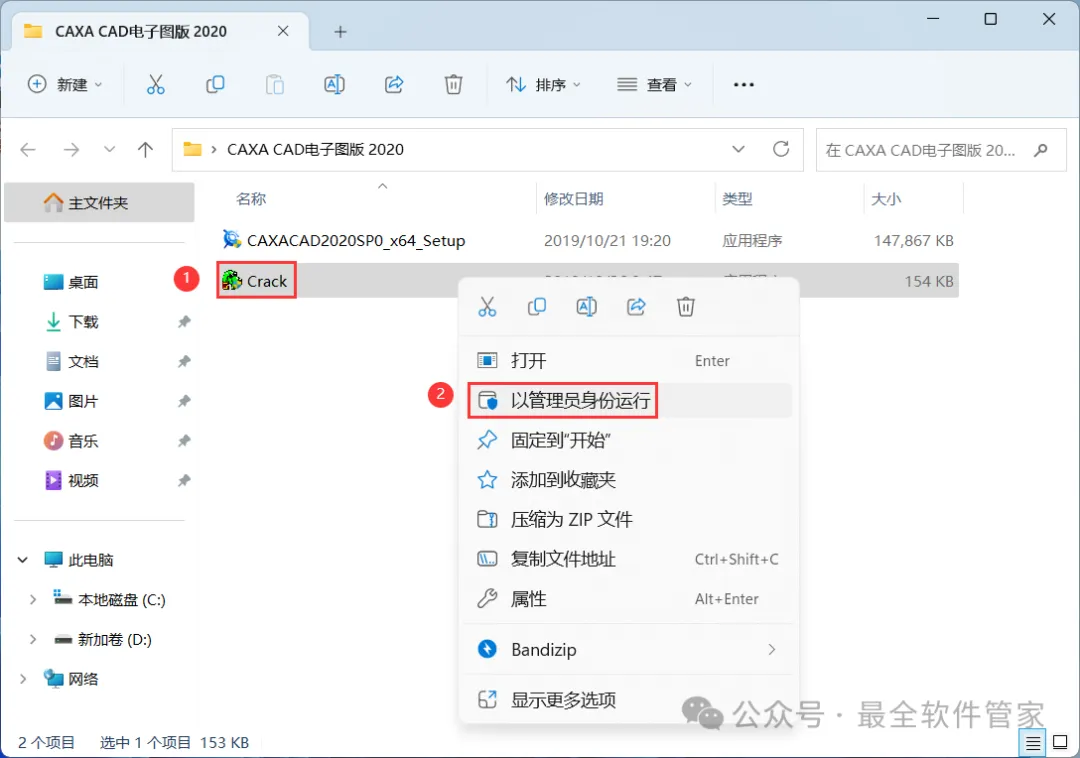 [不限速下载]:免费获取百度网盘不限速下载工具。公众号内回复:不限速[注意事项]:安装前请关闭网络、杀毒软件和防火墙,否则易安装失败。公众号内回复:1[解压软件]:小编用的解压软件是Bandizip,获取Bandizip软件安装包。公众号内回复:21、下载CAXA CAD电子图版 2020软件安装包到电脑上,右键选择【解压到CAXA CAD电子图版 2020\】3、找到【CAXACAD2020…】应用程序,右键选择【以管理员身份运行】它7、软件默认安装在C盘,可自定义更改软件安装位置,这里小编选择安装在D盘;点击【安装】9、不勾选【运行CAXA CAD电子图版 2020】,再点击【完成】10、回到CAXA CAD电子图版 2020文件夹,找到【Crack】程序,右键选择【以管理员身份运行】它 11、勾选【图版2020x64(64位)】,再点击【Go】13、回到桌面,右键桌面上的【CAXA CAD电子图版 2020软件图标】,点击【打开】16、以上就是CAXA CAD电子图版 2020软件安装的全过程,要是对你有帮助的话,请为小编点个赞! 免责声明:软件资源均来源于网络,仅供用户交流学习与研究使用,版权归属原版权方所有,版权争议与本公众号无关,用户本人下载后不能用作商业或非法用途,否则后果均由用户承担责任;如果您访问和下载此文件,表示您同意只将此软件用于参考、学习而非其他用途,否则一切后果请您自行承担,请于下载后24小时内删除,不允许用于商业用途,否则法律问题自行承担。如果您喜欢该软件,请支持正版软件,购买注册,得到更好的正版服务。