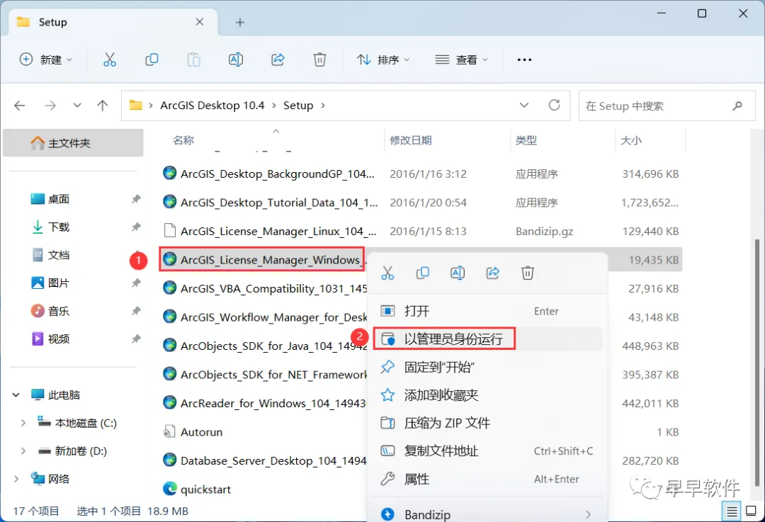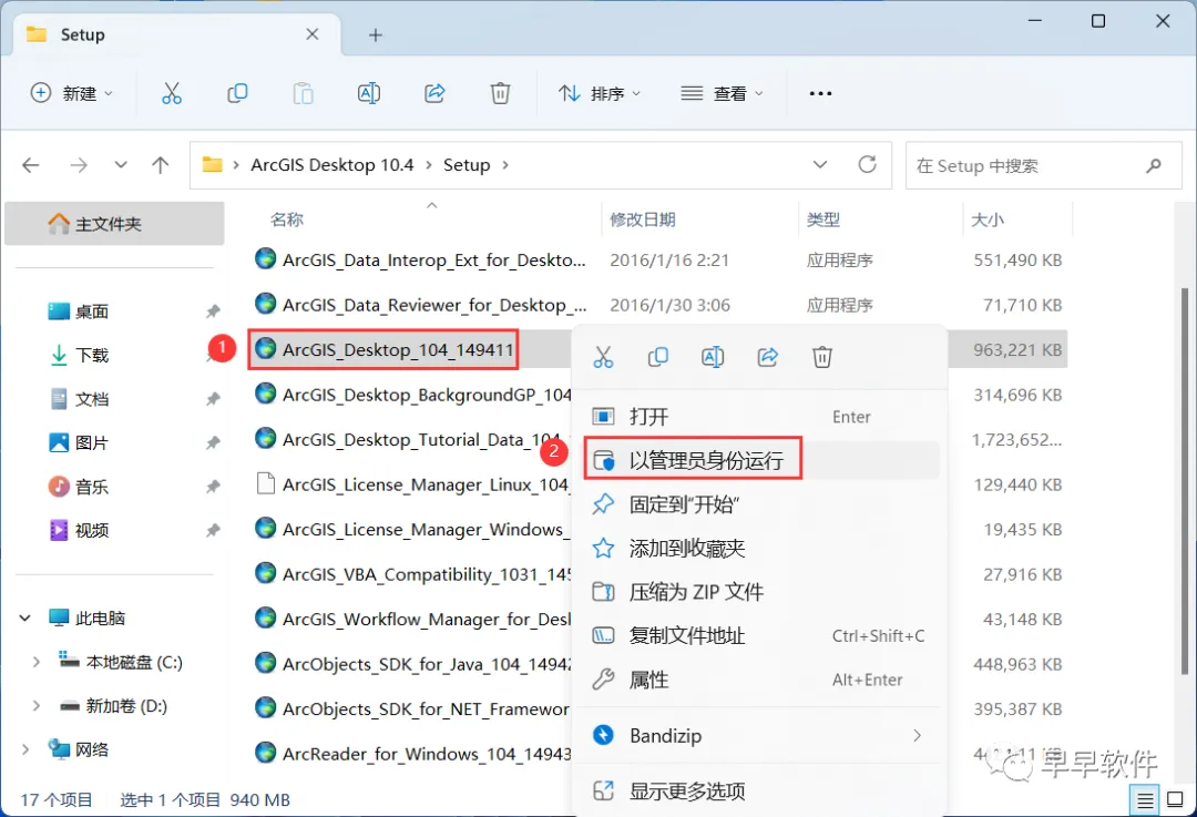 15、回到Setup文件夹,找到【ArcGIS_Desktop_104】应用程序,右键选择【以管理员身份运行】它