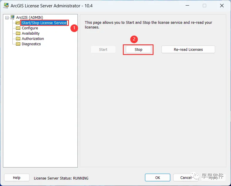 13、点击【Start/Stop License Service】,再点击【Stop】